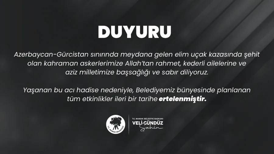 Mamak Belediyesi tarafından yapılan açıklamada, yaşanan üzücü olay nedeniyle belediye tarafından düzenlenmesi planlanan tüm etkinliklerin ileri bir tarihe ertelendiği bildirildi.
