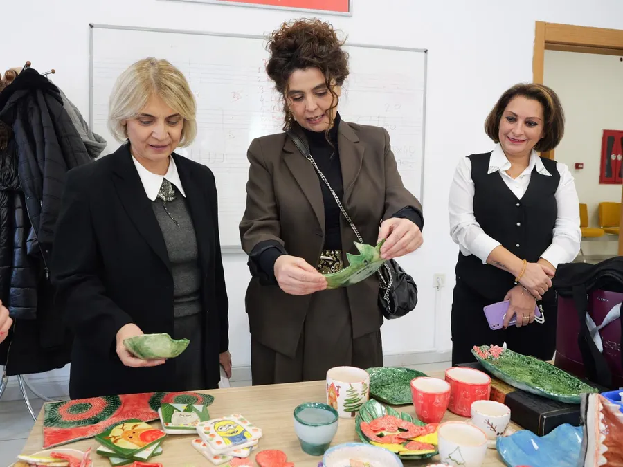 Etimesgut Belediye Başkan Yardımcısı Ebru Keyvan ile değerli sanatçı, yönetmen ve tiyatro oyuncusu Etimesgut Belediye Başkanı Erdal Beşikcioğlu’nun kıymetli eşi Elvin Beşikcioğlu, Etimesgut Belediyesi bünyesinde faaliyet gösteren Etisem Geleneksel El Sanatları Merkezi ile Bağlıca Devlet Bahçeli Tesisleri Etisem kursu ve kreşini ziyaret etti.