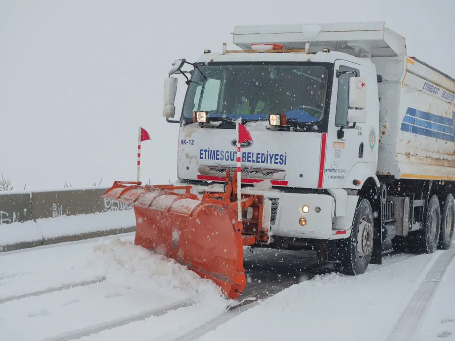 Etimesgut Belediyesi, karla mücadele çalışmalarını güçlü personel ve araç envanteriyle sürdürüyor. Belediye envanterinde bulunan 20 adet kepçe ve iş makinesi, 25 adet kar küreme ve tuzlama kamyonu ile 25 adet açık kasa araç sahada aktif olarak görev alıyor. Ayrıca karla mücadele karavanlarında tuz, kürek ve gerekli tüm ekipmanlar hazır bulundurularak olası olumsuzluklara anında müdahale edilmesi sağlanıyor. Kar yağışının ulaşımı ve günlük yaşamı aksatmaması amacıyla 200’ü aşkın belediye personeli, 7/24 esasına göre sahada görev yapıyor.