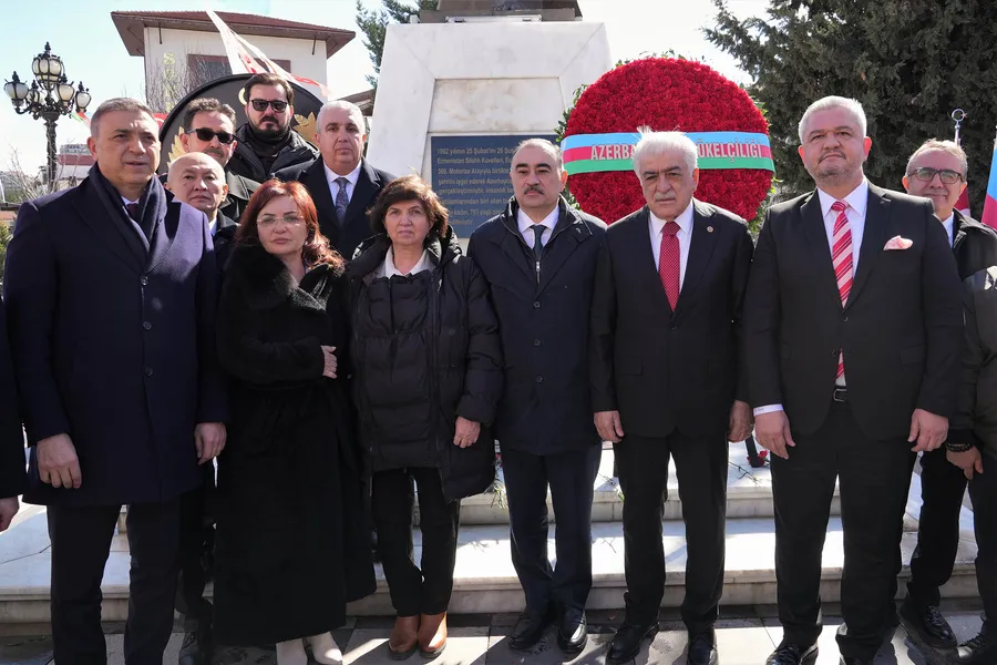 Konuşmaların ardından Kur’an-ı Kerim tilaveti okunarak Hocalı Şehitleri Anıtı’na çelenk bırakıldı.