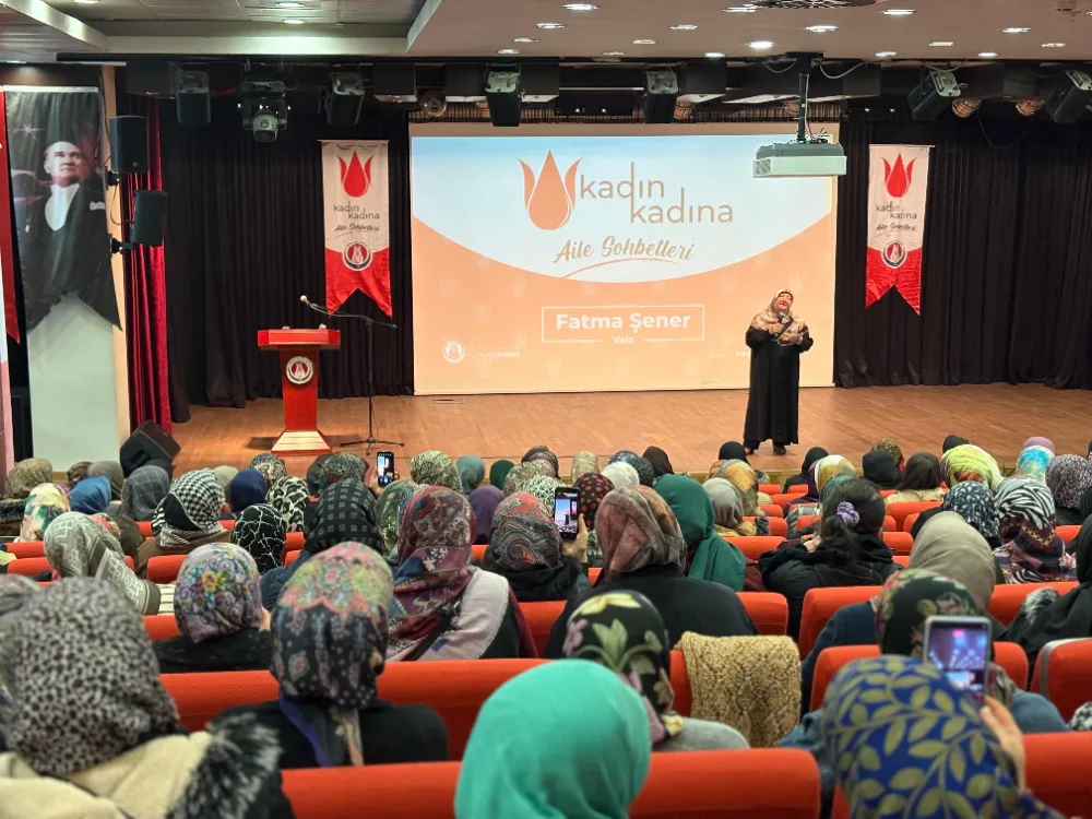 Başkan Murat Ercan’ın ardından konuşmalarını gerçekleştiren Emine Ercan ise: “Sevgili hanımefendiler, kıymetli Fatma Hocam… Kadın Kadına Aile sohbetleri Programına hoş geldiniz. 4. Yılımızın 3. Programını yapıyoruz. Farklı konu ve konukları misafirlerimizle buluşturuyoruz. Manevi değerle üzerine, aile üzerine konuşuyoruz. Birkaç gün sonra mübarek üç aylara girmiş olacağız. Dinimizce üç ayların değeri ve kıymeti büyüktür. Allah’ım bizleri hayırlısıyla ramazana kavuştur diye dua ediyoruz. Üç aylarda yapacağımız ibadetleri Rabbim kabul etsin. Bizlerin bu birlik ve beraberliğine öncülük eden Belediye Başkanımız Murat Ercan’a teşekkür ediyorum.” Dedi.