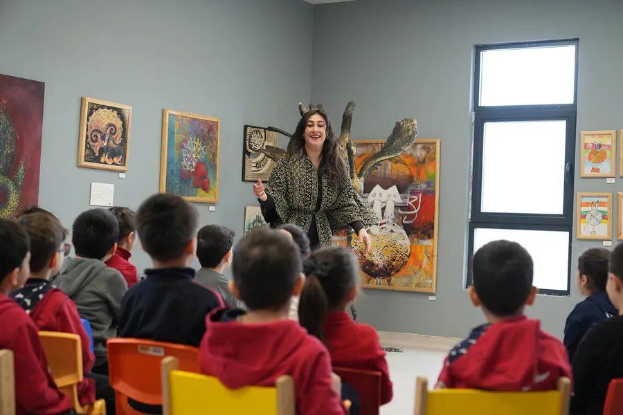 Masal anlatımının ardından öğrenciler, Kültür Elçileri Çocuk Sanat Müzesi’ni gezerek müzenin zengin içeriklerini yerinde inceleme imkânı elde etti. Müze gezisi kapsamında çocuklar; Türk mitolojisi, Anadolu medeniyetleri, geleneksel el sanatları ve uluslararası çocuk resimlerinden oluşan bölümleri gezerek farklı kültür ve sanat alanları hakkında bilgi edindi. Minikler, hem geçmiş uygarlıkların izlerini keşfetti hem de dünyanın farklı ülkelerinden çocukların sanat eserlerini görme fırsatı yakaladı.