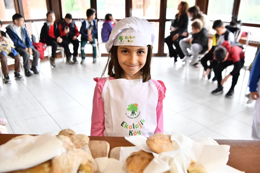 Mamak Belediyesi Kırsal Hizmetler Müdürlüğü, çocukların toprağı, tarımı tanımasını ve çevreye duyarlı bireyler olarak yetişmesini hedefleyen atölye eğitimlerine devam ediyor. Çocuklar, Ekolojik Köy’de eğitimlere, sinevizyon gösterisi eşliğinde teorik dersler alarak başlıyor. Teorik derslerde, fermantasyon, yoğurt yapımı, sirke yapımı ve kurutma gibi eğitimler veriliyor. Çocuklar ekmek atölyesinde, daha önceden yapılan ekmek hamurlarını kendi istedikleri şekilleri vererek hazırlıyor ve ekmek atölyesinin ardından tohum ambarına gidiyorlar. Burada ata tohumunun önemi anlatılırken, tohum nasıl ekilir ve dikilir bunlar anlatılıp gösteriliyor. Tohum ambarından sonra, arıcılık atölyesinde bal ve polen üretimi, bal sağımı gibi uygulamalar gösteriliyor. Ardından “Atiko” otobüsünde, sıfır atık projesiyle ilgili geri dönüşüm bilgileri veriliyor. Çocuklar, son kısımda pişen ekmeklerini tekrar ekmek atölyesine girerek alıyorlar. Burada çocuklara 10-15 dakika süreç veriliyor ve ekmekleri tüketmek isteyenler burada tüketiyor.