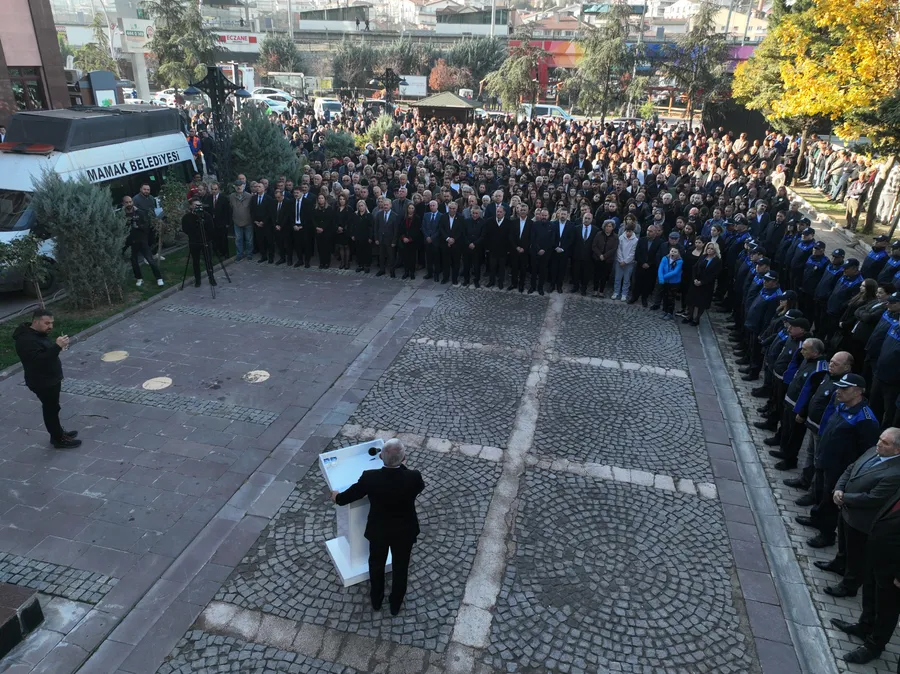 Belediye hizmet binası önünde gerçekleştirilen törende, Mamak Belediye Başkanı Veli Gündüz Şahin, Mamak Belediyesi Meclis Üyeleri, Mahalle Muhtarları, Mamak Belediyesi Başkan Yardımcıları, birim müdürleri, belediye personeli ve çok sayıda vatandaş bir araya geldi. Törende, Başkan Veli Gündüz Şahin, belediye çelengini Atatürk Anıtı’na sundu. Ardından sirenlerin çalmasıyla birlikte saygı duruşunda bulunuldu ve İstiklal Marşı okundu.