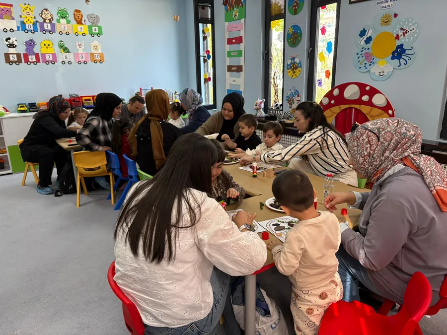 Doğadan toplanan yapraklarla renkli çalışmalar yapıldı, hem anneler hem de çocukları gönüllerince eğlendi. Etkinlikte çocuklar sonbaharı öğrendi, el becerilerini geliştirme fırsatı buldu.