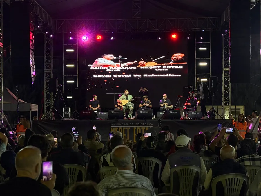 Kent Meydanı’nda düzenlenen etkinlikte, vatandaşlar büyük ustaya sevgi ve saygılarını gösterdi. Sanatçı Şahin Karakuş en sevilen Neşet Ertaş türkülerini Sincanlılar için seslendirdi.