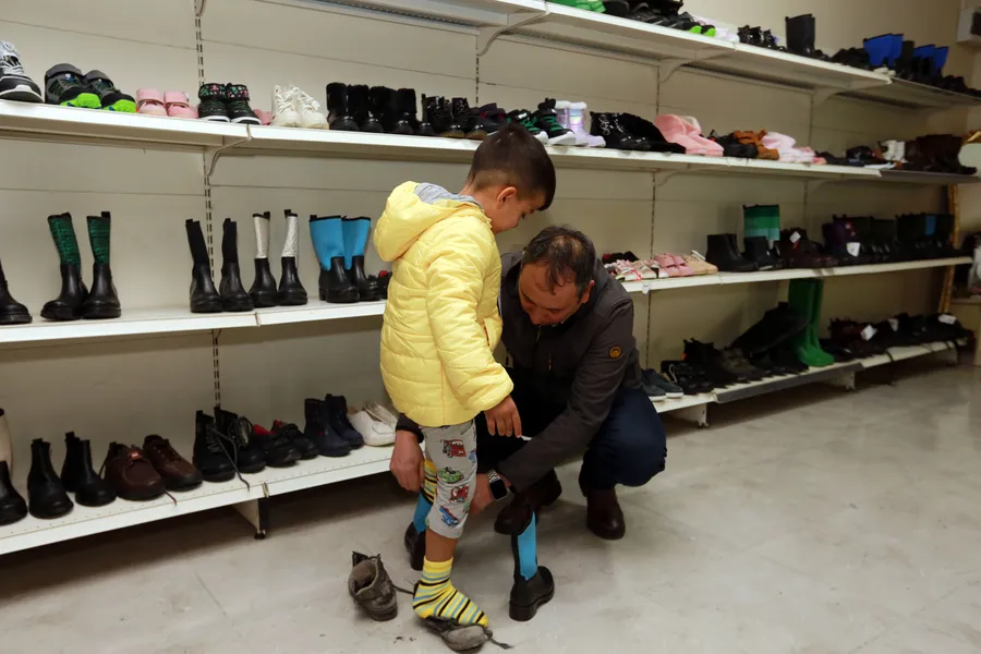 Ürünleri inceleyen çocuklar, beğendikleri kıyafet ve ayakkabıları almanın sevincini yaşadı. Yenimahalle Belediye Başkanı Fethi Yaşar da dağıtım gününde aileleri yalnız bırakmadı. Çocukların heyecanına ortak olan Yaşar, marketi ailelerle birlikte gezdi.