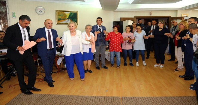 Türk Halk Müziği sanatçıları Salih Acar ve Ayhan Karadağ´ın çeşitli türküler söylediği programda Başkan Altınok da Huzurevi sakinlerinin halayına katıldı.
