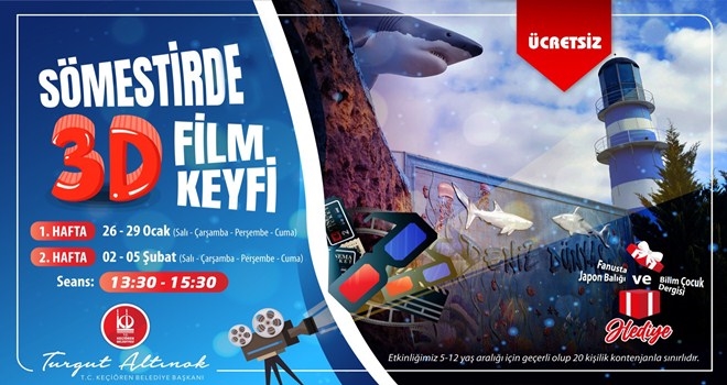 Keçiören Belediyesi Deniz Dünyası´nda bulunan sinema salonu öğrencilerin sömestirde keyifli vakit geçirmesi için hazırlandı. Yarıyıl tatili boyunca 5-8 ve 9-12 yaş grubu öğrenciler için düzenlenecek olan Deniz Dünyası Sinema Etkinliği 6 farklı filme ev sahipliği yapacak.