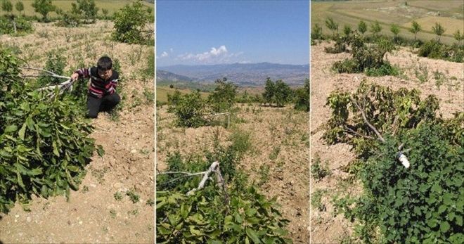 Olay dün gece ilçeye 25 kilometre uzaklıkta bulunan Karaağaç köyünde meydana geldi. Üç çocuk babası Recep Diş, altı yıl önce kendisine ait bahçesine 170 ceviz ağacı dikti. Ceviz ağaçlarından yaklaşık 50´si meyve vermeye başladı. Ancak, gece saatlerinde kimliği belirsiz kişi veya kişiler tarafından 28 ceviz ağacı kesildi. Sabah saatlerinde ceviz ağaçlarının kesildiğini fark eden Fatma Diş, olayı tedavi amacıyla İstanbul´a oğlu Turan Diş ile giden eşi Recep Diş´e bildirdi. Olayın ardından Diş, ailesi jandarmaya suç duyurusunda bulundu.