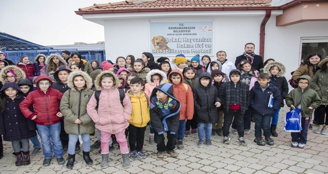 Kahramankazan Belediyesi Gençlik Merkezi´nce düzenlenen programda öğrenciler, Sokak Hayvanları Bakım ve Rehabilitasyon Merkezini ziyaret etti.