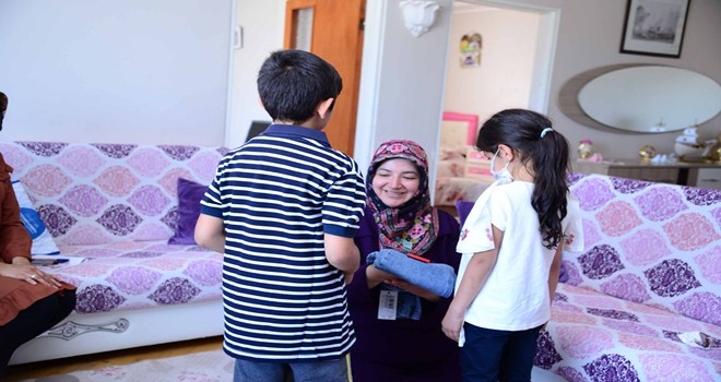 Kahramankazan Belediye Başkanı Serhat Oğuz ve eşi Nergiz Oğuz´un da eşlik ettiği belediye ekipleri, ziyaret ettiği evlerde çocuklara bayramlık kıyafetler ile oyuncak hediye etti. Bayramlık kıyafetlerini alan miniklerin sevinçleri görülmeye değerdi.