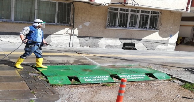 Kızılcahamam Belediyesi ekiplerince çöp konteynırlarının çevresinde biriken yağ, kir ve ürün kalıntıları ile benzeri çöplerin çevrede oluşturacağı kötü koku ve kirliliği önlemek amacıyla çöpler alındıktan sonra özel konteynır yıkama aracı ile konteynırlar yıkanıp dezenfekte edildi.