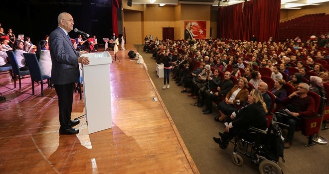 Konser sonrası konuşma yapan Yaşar ?Cumhuriyet öncesi dönemde kadınlarımız dışlanmış bir konumda bulunmakta, hiçbir söz sahibi olmadan, büyük acılar yaşayarak hayatta kalma mücadelesi vermekteydi. Gazi Mustafa Kemal Atatürk ve arkadaşlarının kurduğu Türkiye Cumhuriyetinde verilen büyük mücadele sonrasında eşit yurttaşlık düşüncesinin temelleri atılarak, kadınlarımız medeni hukukun tanımış olduğu seçme, seçilme ve eğitim gibi temel haklara birçok Avrupa ülkesinden daha önce kavuşmuş oldu. Aradan onlarca yıl geçmesine rağmen kadınlarımız hala töre cinayetlerine kurban gidiyor, tacize uğruyor ve kadının varlığını özümsemeyen bir kesim tarafından ötekileştiriliyor. Unutulmamalıdır ki bu ülke de barış ve sevgi gelecekse bunun temel sağlayıcısı kadınlar olacaktır. Kadının olduğu yerde birlik, barış ve kardeşlik olur. 10 yıldır eşit yurttaşlık bilinci ile çalışıyor kadınlara en önemli görevlerde yetki veriyoruz. Belediye bünyesinde bulunan en değerli müdürlüklerimizi kadınlar yönetiyor. Gazi Mustafa Kemal Atatürk´ün bizlere hedef gösterdiği muasır medeniyetler seviyesine ulaşmanın yolu kadın ve erkek eşitliğine inanmaktan geçiyor? dedi.