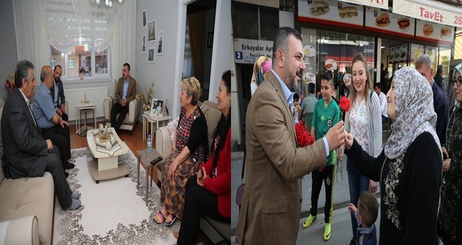 Şehit anneleri ziyaretlerinin ardından Başkan Ercan Sincan sokaklarında anne ve anne adayı kadınlara karanfil dağıtarak anneler gününü kutladı.