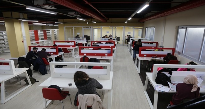 Halk Kütüphanesi´nde öğrencilerin sessiz, sakin ve huzurlu bir ortamda ders çalışmasına ve araştırma yapmasına imkan sağlayan tüm imkanlar sunuluyor. Grup çalışma alanları, kafeterya ve dinlenme alanlarının da hizmet verdiği kütüphanede, öğrencilere ücretsiz çay servisi yapılıyor.