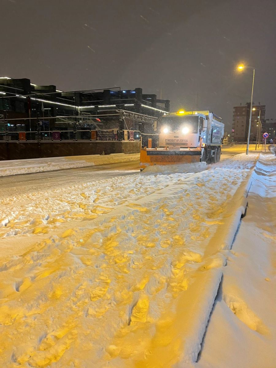 Ekipler, kar yağışıyla birlikte yol açma ve ardından tuzlama çalışmalarını aralıksız sürdürdü. Okul ve hastanelere çıkan yollara öncelik veren belediye ekipleri, iniş ve çıkışların sıkıntı oluşturduğu dik rampalarda özellikle tuzlama çalışması gerçekleştirdi.