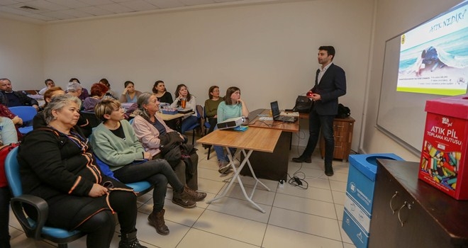 Temizlik İşleri Müdürlüğü yetkilileri, YENİMEK kurs merkezlerinde eğitim gören kursiyerlere sıfır atık ve geri dönüşüm konulu seminer düzenledi.