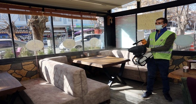 Kapılarını açan restoran ve kafelere dezenfekte işlemi