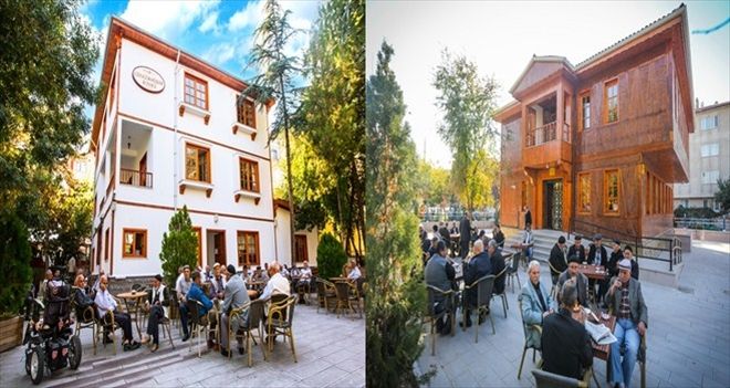 Konağın her köşesinde tadına doyulmaz sohbetlerle bir araya gelen güngörmüşler, sıcak havanın da tadını çıkarıyor.