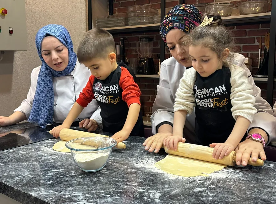 Tezgahın başına geçip önlüklerini giyen Karanfil Kreşi öğrencileri hamurları yoğurdu, itinayla açtı. Usta öğreticiler ve öğretmenlerinden de destek alan öğrenciler çeşitli şekiller vererek kurabiyeleri hazırladı. El becerilerini geliştirme fırsatı bulan öğrenciler, yeni bir ortamla tanıştı, profesyonel bir mutfakta keyifli anlar yaşadı. Pişen kurabiyelerin mis kokusu Gastro Sincan’ı sararken, minik şeflerin mutluluğu yüzlerinden okundu.