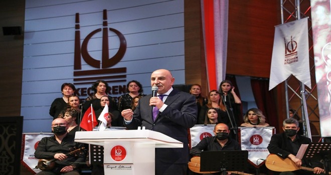 Keçiören Belediyesi Konservatuarı Türk Halk Müziği Korosu Konserinde konuşan Belediye Başkanı Turgut Altınok, ?Pandemi nedeniyle uzun süre evlerde kaldık. Salgının siyasal, ekonomik, psikolojik ve sosyolojik etkileri oldu. İnsanlarımız yoruldu ve bunaldı. Nefes alamaya ihtiyaçları vardı. Geçmişimizi hafızalara işleyen, yaşayan anıt, altın ses, bülbül ses ve ulu çınar Bedia Akartürk´ün konuk sanatçı olduğu, güzel nağmelerinden herkesin istifade ettiği konserimizde gönül ve yürek paslarımızı sildik. Bedia Akartürk´e ve saz arkadaşlarına çok teşekkür ediyorum.? dedi.