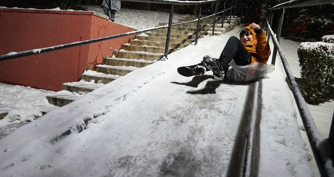 Ankara´da etkili olan yoğun kar yağışı ile birlikte Keçiören´de kartpostallık görüntüler ortaya çıkarken, çocuklar sokaklara akın ederek hem kartopu oynadılar hem de eğimli noktalarda kızak ve naylon poşetlerle kayak yaptılar.