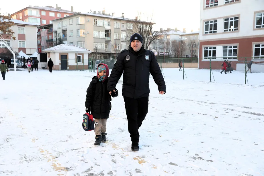 Öte yandan Keçiören Belediyesi Zabıta Müdürlüğü ekipleri de sahada görev alarak olumsuz hava koşulları karşısında okula giden çocuklara destek oluyor. Zabıta ekipleri, öğrencilerin okul giriş ve çıkış saatlerinde karşıdan karşıya güvenli şekilde geçmelerine yardımcı olarak olası risklerin önüne geçiyor. Zabıta personeli bu çalışmayla hem vatandaşların hem de öğrencilerin güvenliğini sağlıyor.