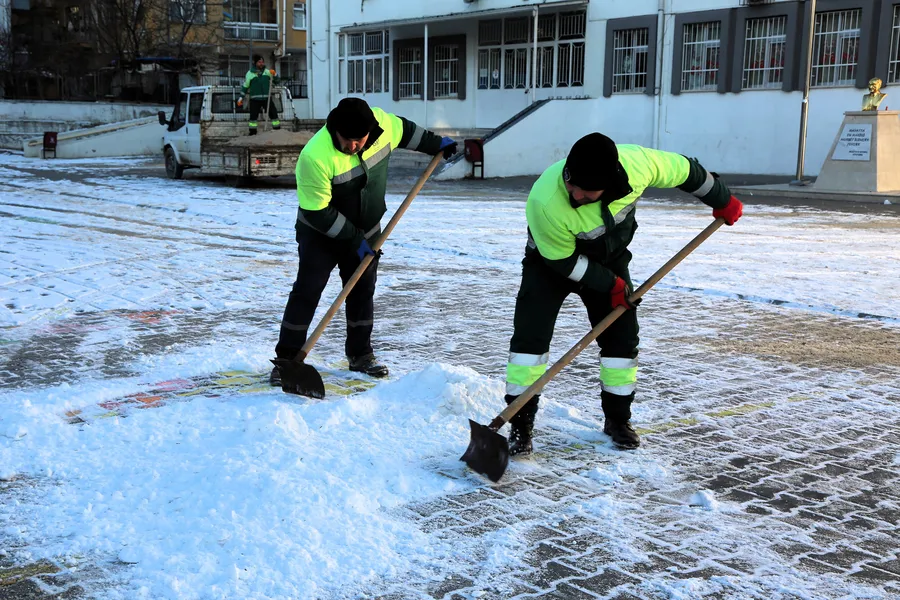 Belediye ekiplerinin yoğun mesaisiyle okul girişleri, kaldırımlar ve yaya yolları ulaşıma elverişli hale getirilirken, buzlanmaya karşı önleyici tuzlama uygulamaları yapıldı. Karla mücadele çalışmalarıyla öğrenciler, öğretmenler ve veliler için daha güvenli bir ortam sağlandı.