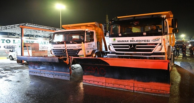 Meteorolojinin kar yağışı uyarısını dikkate alan Mamak Belediyesi, karla mücadele ekibini sıkıntı oluşabilecek noktalarda hazır bekletiyor. Mamak Belediyesi Kar Timi 4 adet 4×4 kar küreme, 12 kamyon, 10 kamyon tuzlama, 14 adet kazıyıcı- yükleyici kepçe, 2 loder,4 greyder, 54 kamyon, kamyonet, 5 kaldırım küreme filosu ile nöbetteler. Meteorolojinin hava tahmini uyarılarına karşı teyakkuzda olan ekip, ilçe genelinde 161 kritik noktada, bin personel ve yüz araçla kar, tipi ve buzlanmaya karşı mücadele ediyor. İhtiyaç duyulan tüm noktalarda ana arterler ve sokaklar başta olmak üzere caddelerde de yol açma ve tuzlama çalışmaları yapan ekip, 24 saat görev yapıyor.