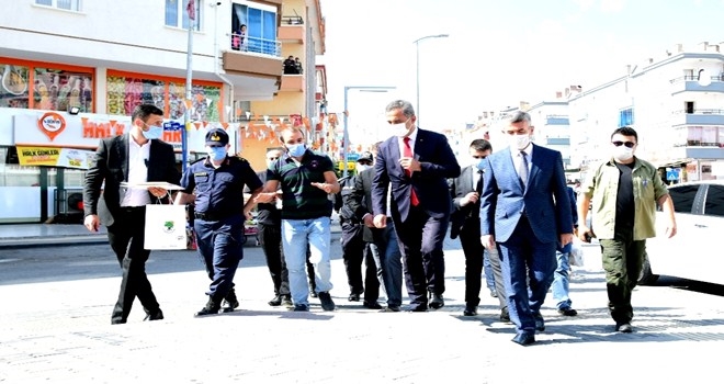 Kaymakam Sırmalı ve Başkan Köse, ?Kontrollü Sosyal Hayat Dönemi? tedbirlerini denetlemek için sahaya indi, koronavirüse karşı mücadelede kararlılık mesajı verdi. Koronavirüs tedbirleri kapsamında uyulması gereken sosyal mesafe, el dezenfektanı, maske, eldiven, uyarı yazıları ve temel hijyen kuralları denetlendi. Gerçekleştirilen geniş kapsamlı denetimlerde, maske takmayan vatandaşlar uyarıldı. Maskesi bulunmayan vatandaşlara Mamak Belediyesi ekiplerince maske dağıtıldı. Mamak´ta genel anlamda esnafın kurallara uyduğunu belirten Kaymakam Sırmalı da, ?Sokakta ve işletmelerimizde, maske, hijyen ve sosyal mesafe kurallarına çoğunlukla düzgün bir şekilde uyulduğunu görmek sevindirici. İşletmeler de bu konuda duyarlı, müşterilerini de sürekli ikaz ediyorlar. Personel maske ve eldiven kullanıyor. Herkes, salgınla ilgili tehlikenin bilincinde?dedi.