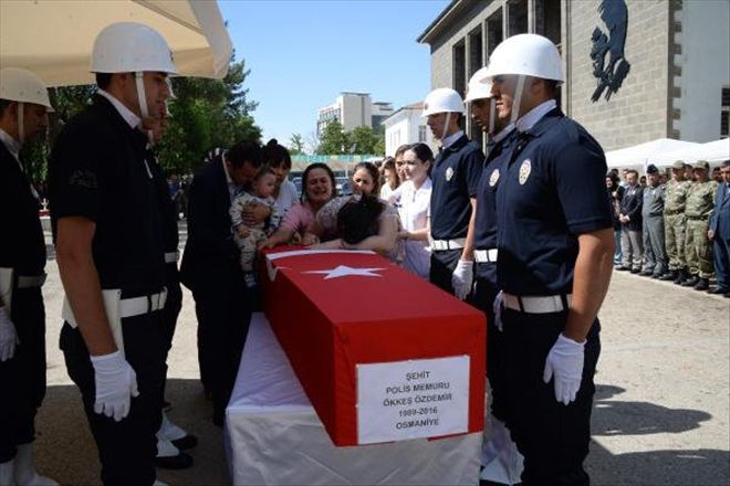 Şehit polis memuru Ökkeş Özdemir´in eşi Ayşenur ile 8 aylık oğlu Alptuğ Özdemir tören alanına güçlükle getirilirken, şehidin eşinin feryatları yürek dağladı. Kucağındaki çocuğunu öperek, gözyaşlarına boğulan şehit eşi Özdemir, "Allah´ım bu nasıl bir acı, nasıl dayanırım. Aşkım beni bırakıp nerelere gittin" diyerek feryat etti.