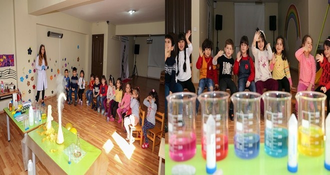Her hafta renkli etkinlikler yapan öğrenciler bu kez Deney Atölyesi etkinliğiyle farklı bir deneyim yaşadılar. Bilimin temel prensiplerini miniklerin anlayacağı düzeyde anlatılan eğitimlerde öğrenciler, hem eğlenip hem de gözlemleme yeteneklerini geliştirdiler. 7 anaokulunda farklı günlerde gerçekleştirilen deney atölyesi etkinliklerinde yapılan deneyleri çocuklar meraklı gözlerle takip etti. Deney süreçlerine aktif olarak katılan öğrenciler keyifli anlar yaşadılar.