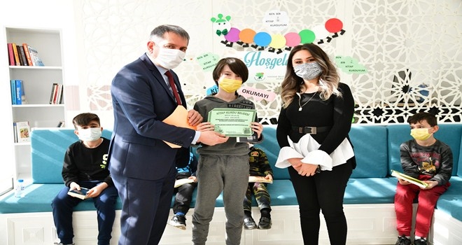 Minik kitap kurtları hem okudu hem de etkinliğin sonunda Kitap Kurdu Belgesi aldı. Mamak Belediye Başkan Yardımcısı Mehmet Düğmeci deetkinlik kapsamında kitap okuyan minikleri ziyaret etti. Çocuklarla kitap okuyup, ödüllerini ve belgelerini veren Düğmeci, okumanın ve ders çalışmanın önemini anlattı.