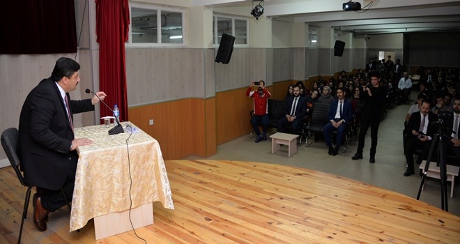 Başkan Oğuz, programda yaptığı konuşmada, liseli gençlere, öğrencilik yıllarından ve yaşadığı olaylardan örnekler verdi. Hayatta hedeflerin önemine değinen Oğuz, çocukluğundan bu yana kendine koyduğu hedeflerden ve bu hedefleri sırasıyla gerçekleştirmek için yaptıklarından bahsetti. Öğrencilerden de kendilerine hedefler belirlemeleri ve bu hedeflere yürümelerini isteyen Oğuz, dünyaya yön veren insanların, başarıya bu yolla ulaştıklarının altını çizdi. Oğuz, ?Onun için hedefinizi gözünüze kestirin ve o hedefe kilitlenin ve ulaşana kadar yürüyün. İnandığınız yolda yalnız da olsanız yürümeye devam edin. Yürüdüğü yolda haktan, hakikatten ve doğruluktan ayrılmayan kimselerin başarılı olduğunu unutmayın? diye konuştu.