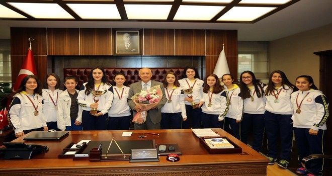 Başkan Yaşar´a Genç Kızlar C Ligi´nde namağlup şampiyonluk ve Küçük Kızlar C Ligi´nde 2´ncilik elde ettiklerini belirten sporcular, kupalarını Yaşar´a getirmeyi de ihmal etmedi.