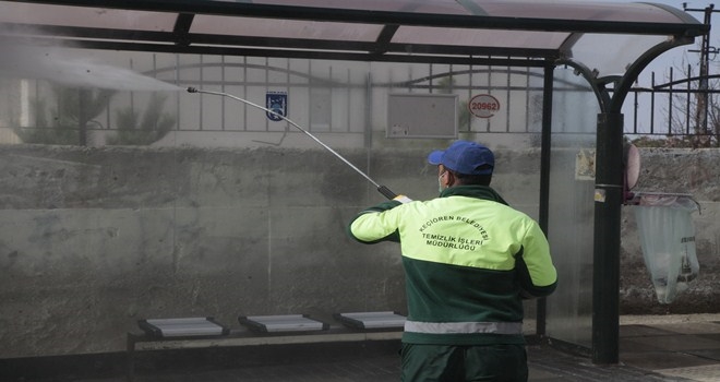 ?Belediyemize kazandırdığımız temizlik araçlarımızla ve kurduğumuz temizlik ekibimizle mahallelerimizdeki her bir cadde, sokak, park, bahçe ve boş arazileri temizliyor ve salgın hastalığa karşı dezenfekte ediyoruz. Okul, cami, cem evi, mescit, Kur`an kursları, sağlık ocağı, muhtarlık binası, polis karakolu, eğitim ve kültür merkezi, hastane, tıp merkezi, halk eğitim merkezi, öğrenci yurdu, zabıta karakolu, mahalle konağı, stadyum, düğün salonu, emniyet müdürlüğü, vergi daireleri, taksi, dolmuş, otobüs, durak, çocuk oyun alanı, ATM ve piknik alanları gibi 480 ayrı noktada da dezenfekte çalışması yürüttük. Mikrobik ortamlarla birlikte şehrimizin her tarafında dezenfekte çalışması yürütüyoruz. Mümkün olduğu kadar evlerimizden dışarıya çıkmayalım, kurallara uyalım bir başkasının sağlığına zarar vermeyelim? dedi.