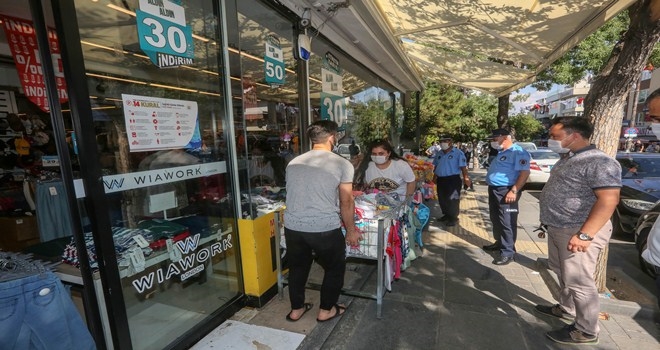 Daha öncesinde uyarıda bulunulan dükkanlara cezai işlem uygulayan ekipler, ilçenin birçok noktasında, vatandaşların yoğun olarak kullandığı kaldırımların üzerine ürünlerini yerleştiren dükkanlara ve mekan sahiplerine gerekli uyarılarda bulundu.