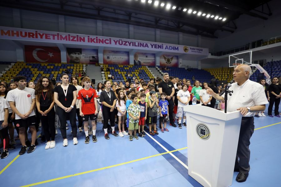 1 Temmuz’da start alan eğitimlere katılarak yaz tatillerini sağlıklı ve eğlenceli geçiren çocuklara Başkan Yaşar tek tek madalyalarını verdi.