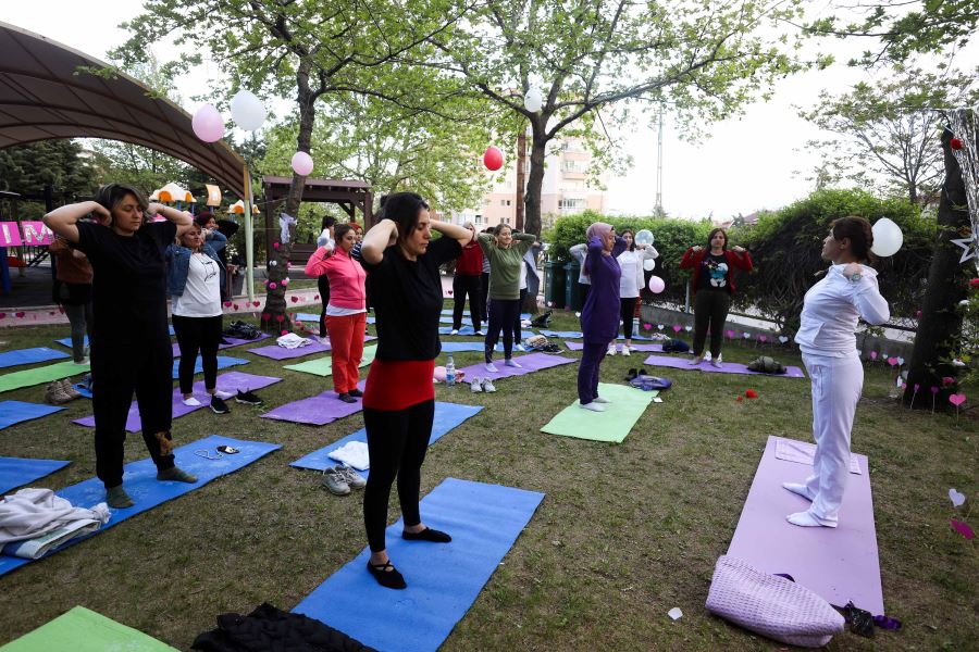 Yenimahalle Belediyesi anaokulu, kreşler ve gündüz bakımevlerinin minik sakinlerinin anneleri yoga seansında buluştu.