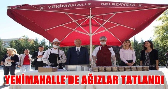 Aşure dağıtımında vatandaşları karşılayan Yenimahalle Belediye Başkanı Fethi Yaşar, kendi elleriyle vatandaşlara aşure ikram etti.